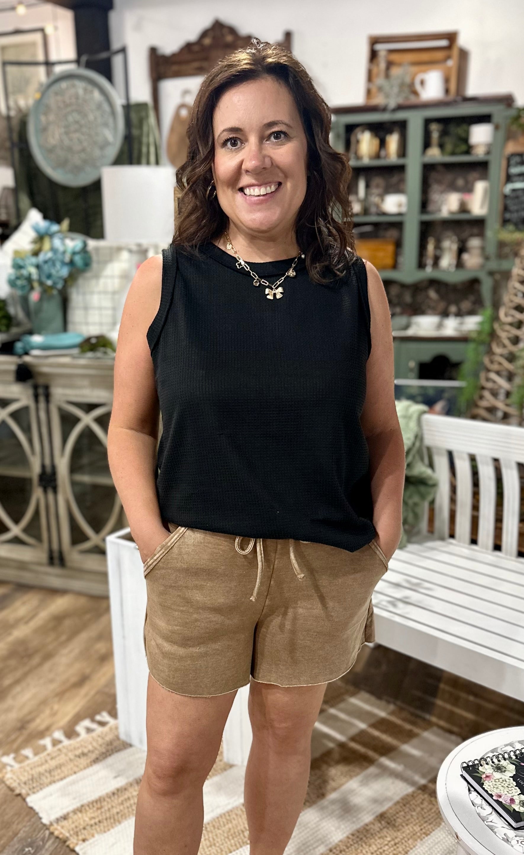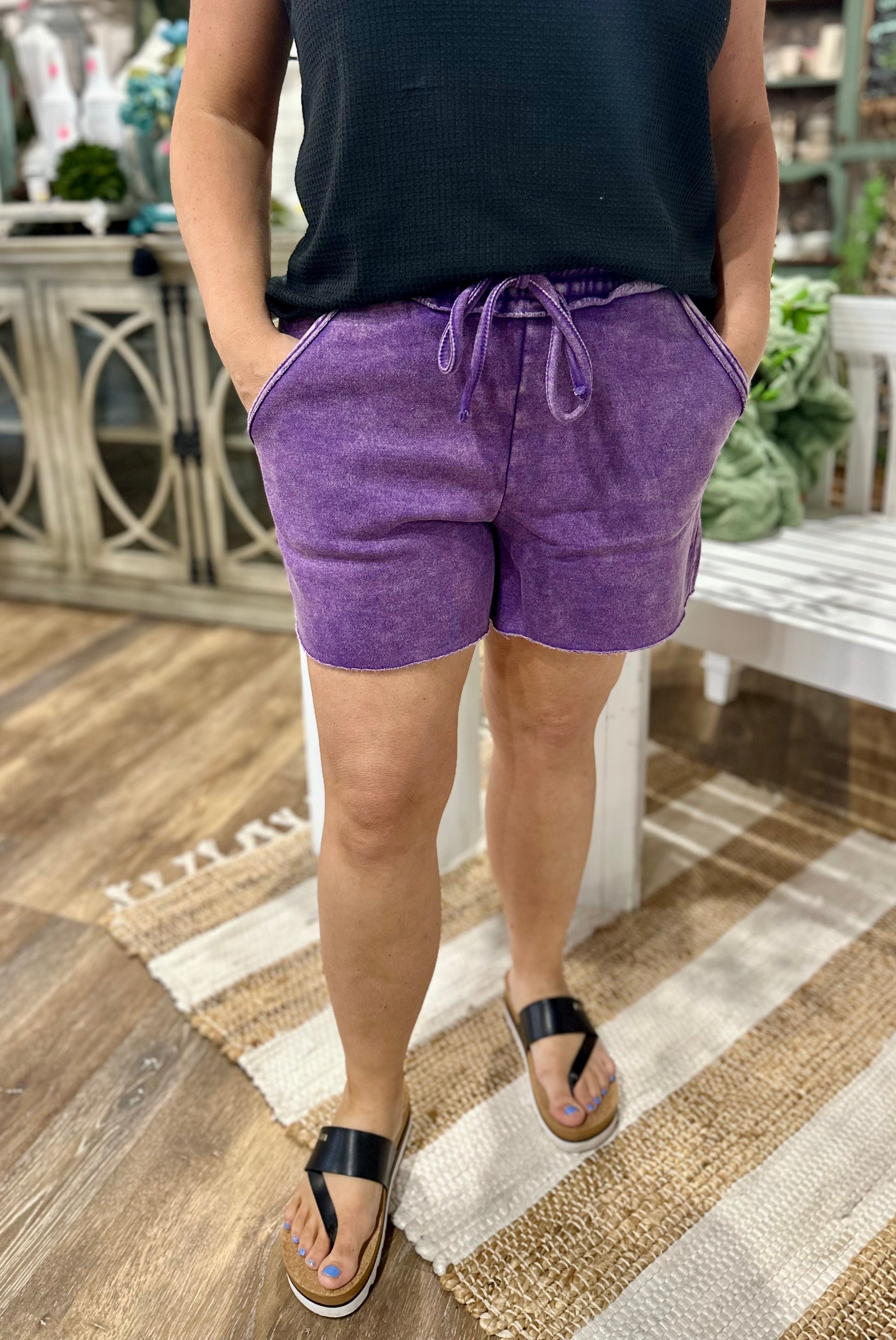 Acid Wash Fleece Drawstring Shorts With Pockets