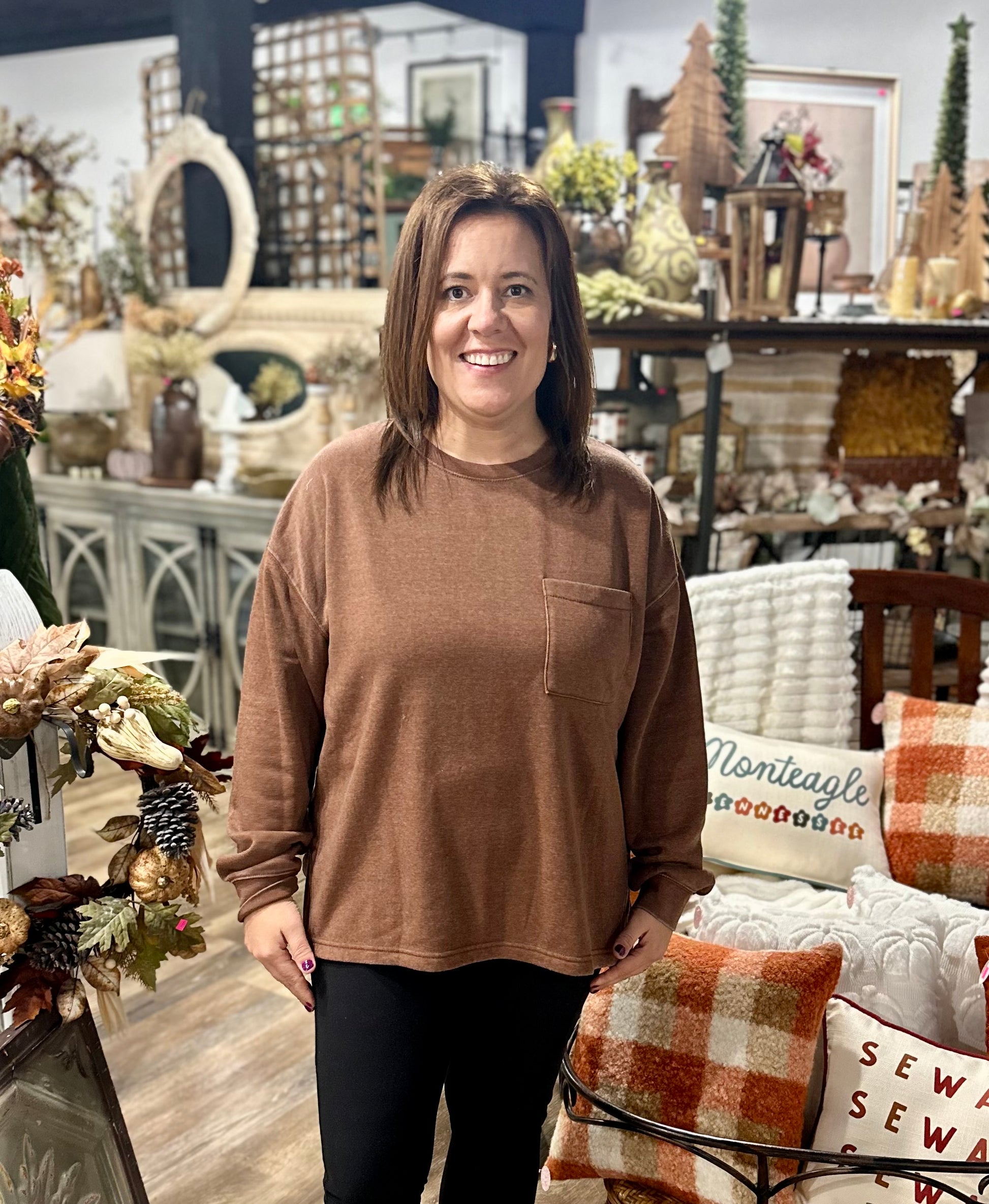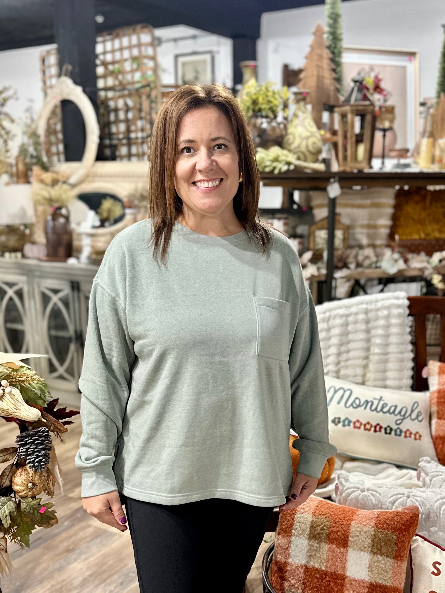 Basic Crew Neck Single Pocket Pullover Sweatshirt