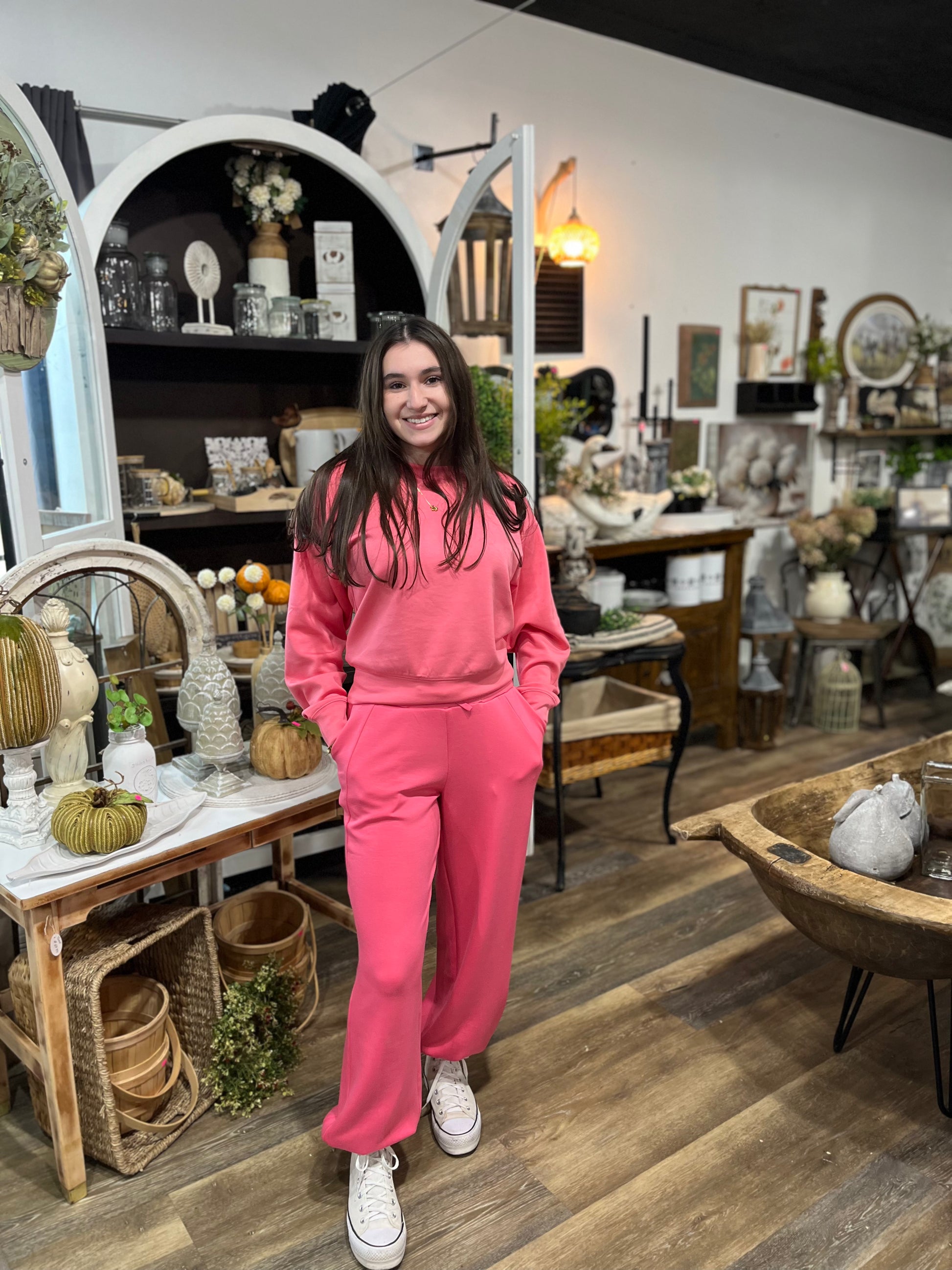 Slip into cozy vibes with this classic crew neck sweatshirt and matching jogger sweatpants set. The sweatshirt’s soft, durable fabric and relaxed fit make it your go-to for everyday comfort, while ribbed cuffs and hem add a snug, casual touch. The joggers, crafted from scuba fabric, feature a drawstring waist, relaxed legs, and cuffed ankles for ultimate ease. Side pockets keep essentials close. Made from a comfy blend of rayon, polyester, and spandex, this duo is perfect for lounging or casual adventures in style.