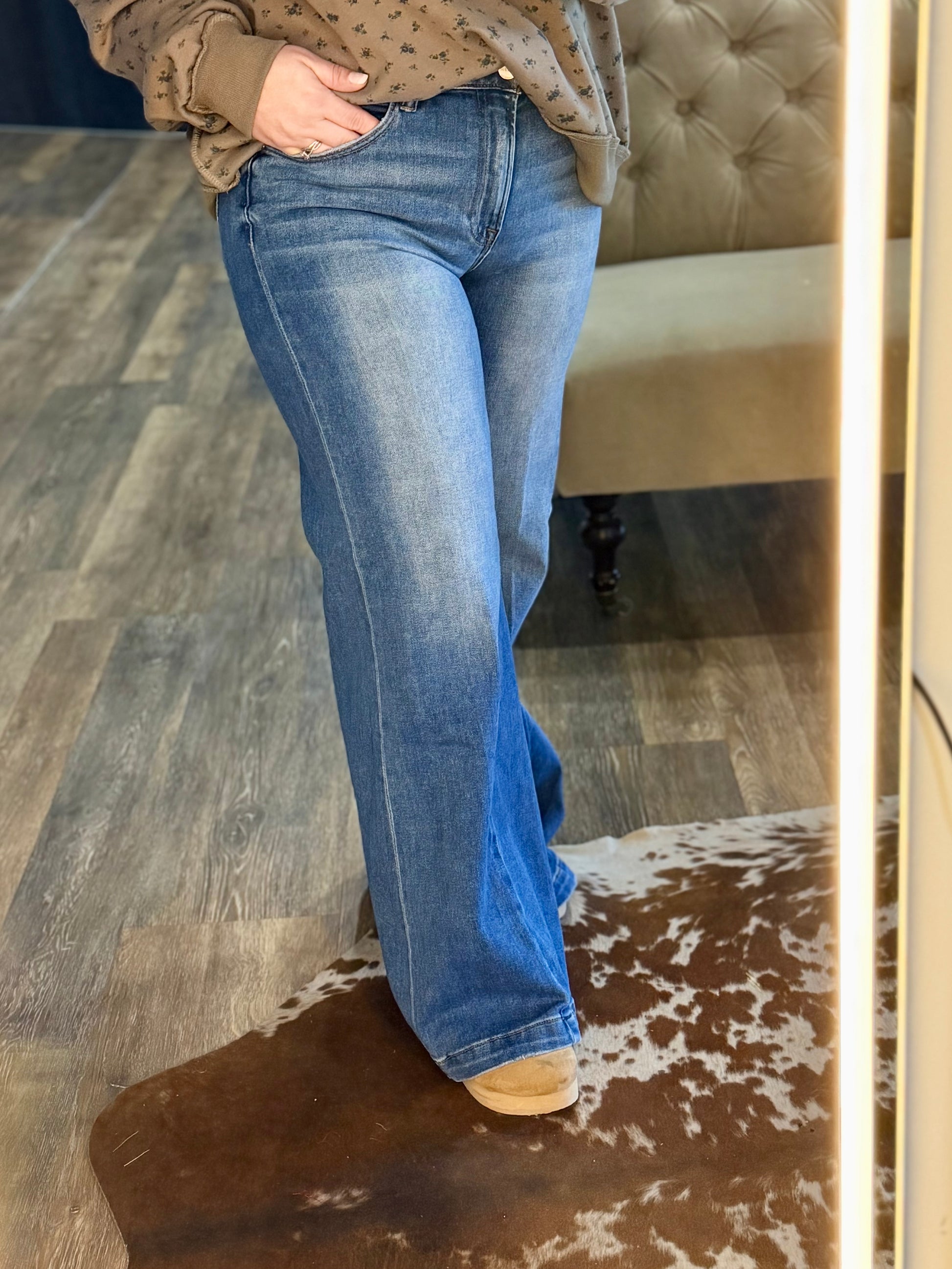 Strut your stuff in these mid-rise wide-leg wonders that mean business—and fun. Sharp creased lines run front and back, giving you that effortlessly polished vibe without the effort. The flared silhouette skims beautifully over your frame, offering comfort that doesn't compromise on style. Perfect for anyone who believes fashion should feel as good as it looks. Dress them up or down—these pants are your new go-to for making an entrance.