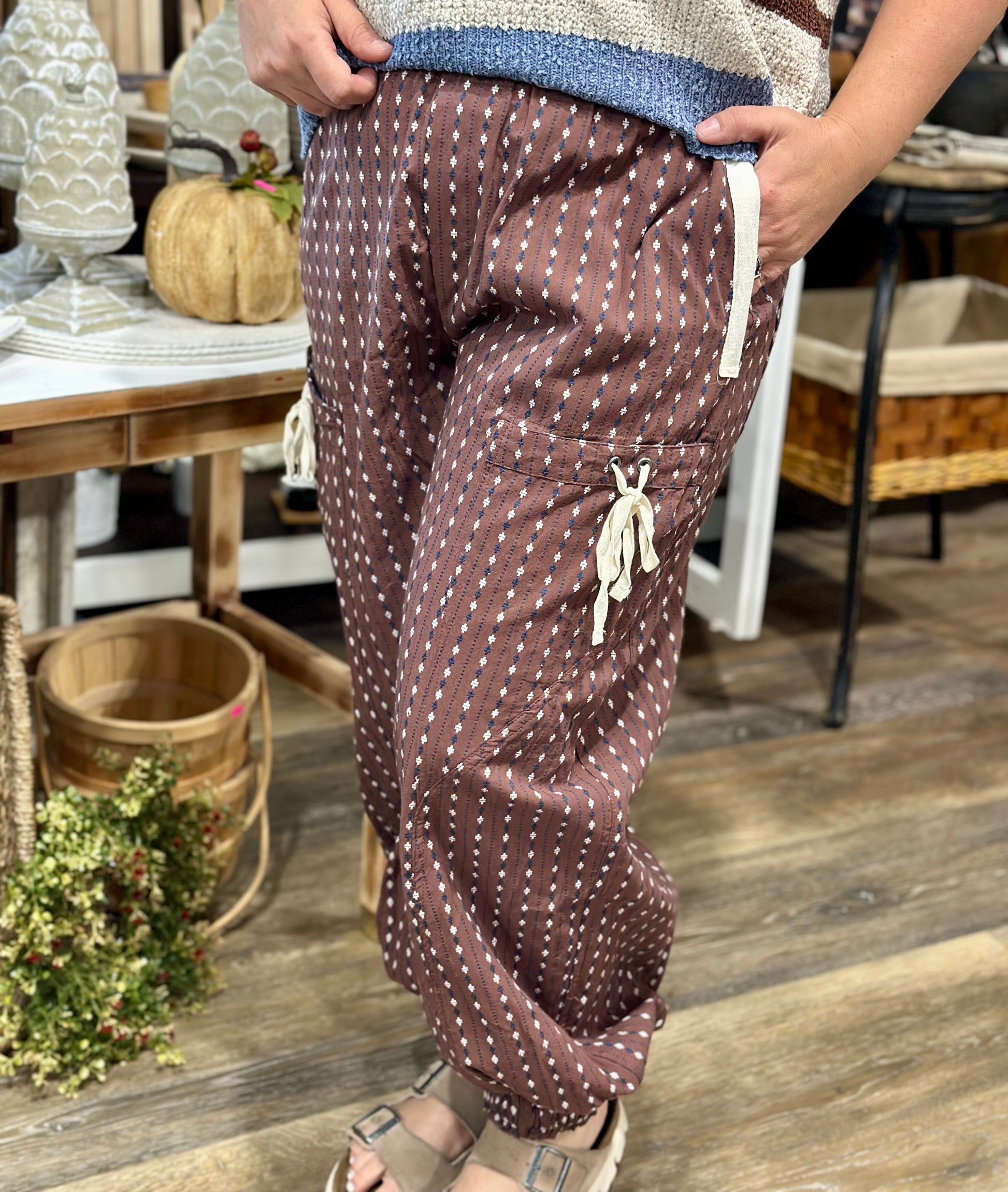 These playful parachute pants feature a fun print that adds a splash of whimsy to any outfit. With charming tie details and gathered bottoms, they offer a comfy fit that moves with you. Perfect for adding a quirky twist to your casual wardrobe!