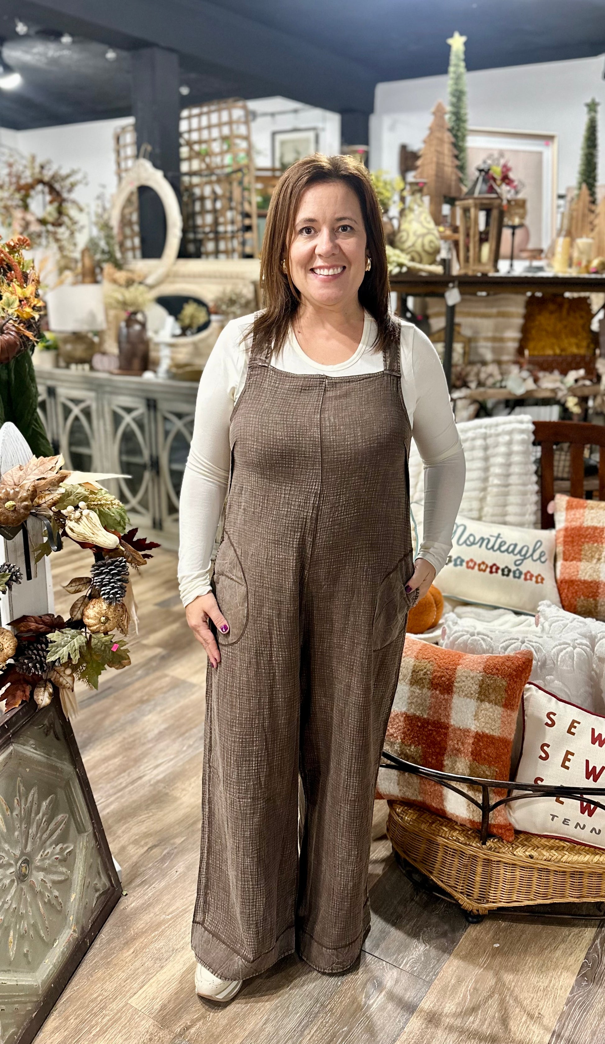 These Double Gauze Washed Wide Leg Overalls bring comfort and style together with their soft, breathable cotton-poly blend fabric. The playful wide-leg cut offers freedom of movement, while the adjustable tie back adds a fun, customizable touch. Perfect for relaxed days when you want to feel cozy and look effortlessly cool.