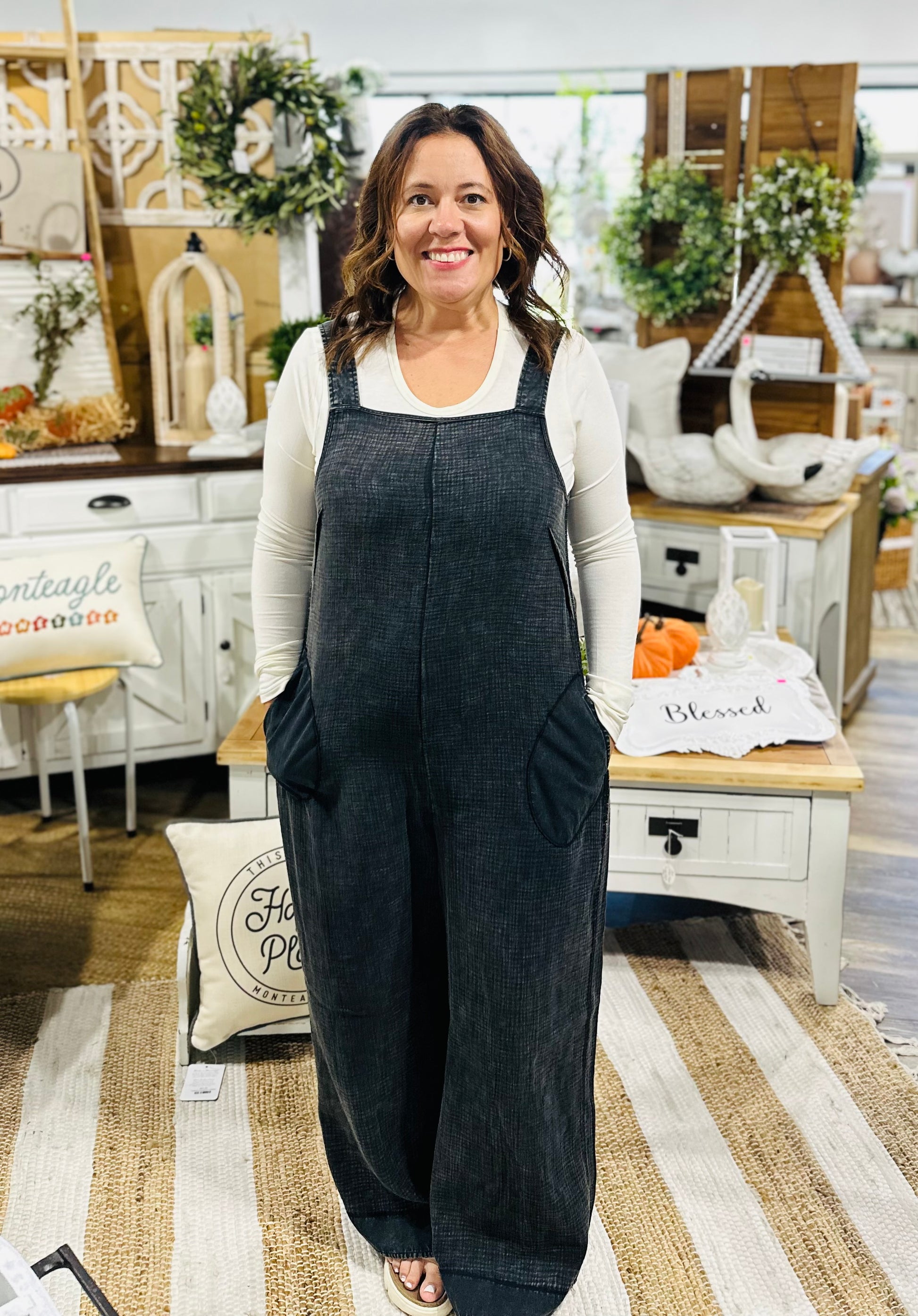 Double Gauze Washed Wide Leg Overalls