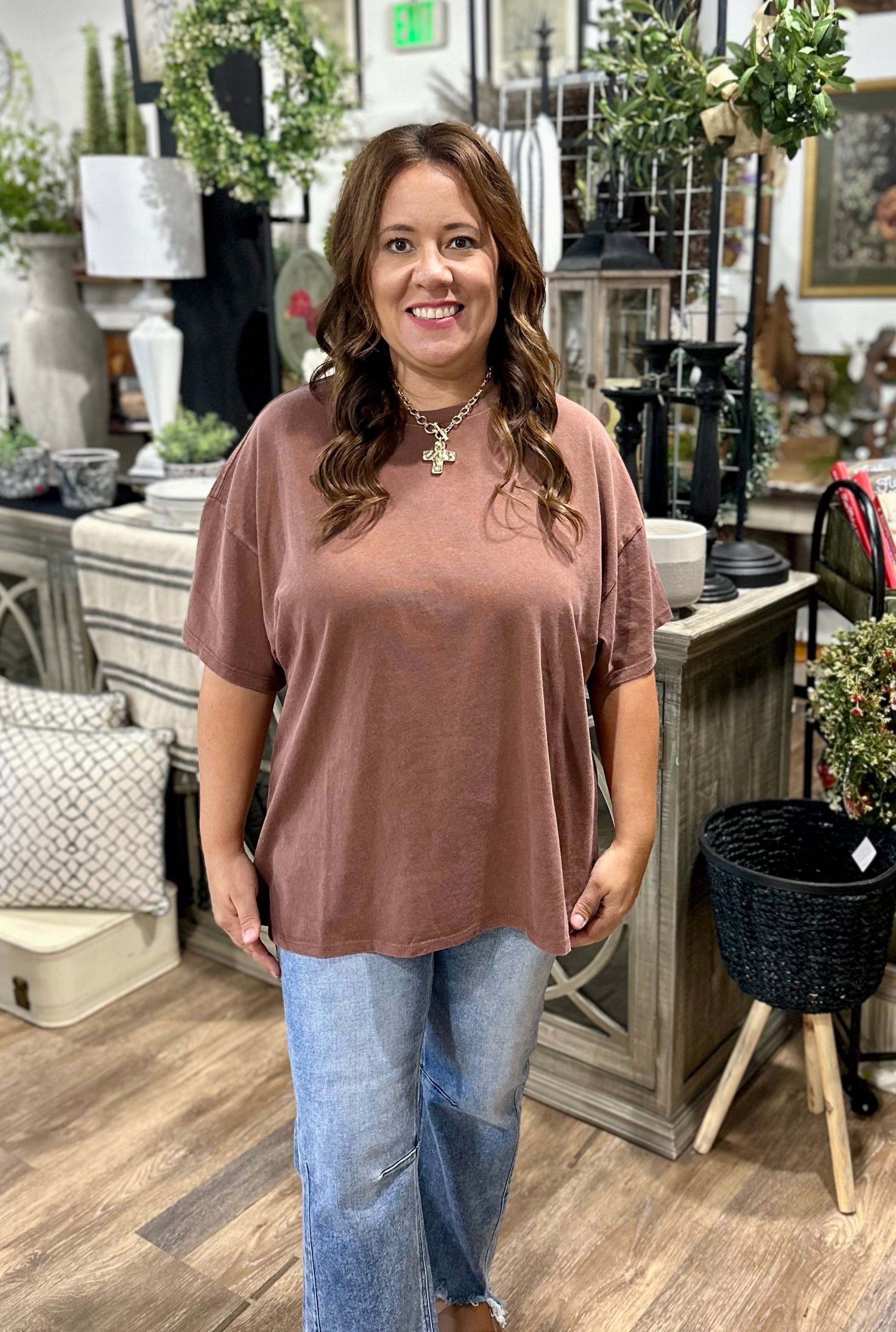 Wrap yourself in cozy comfort with our Favorite Oversized Tee. Made from 100% washed cotton, this knit tee feels soft and lived-in from the first wear. Its roomy, oversized fit makes it perfect for lounging or layering with a playful twist on casual style.