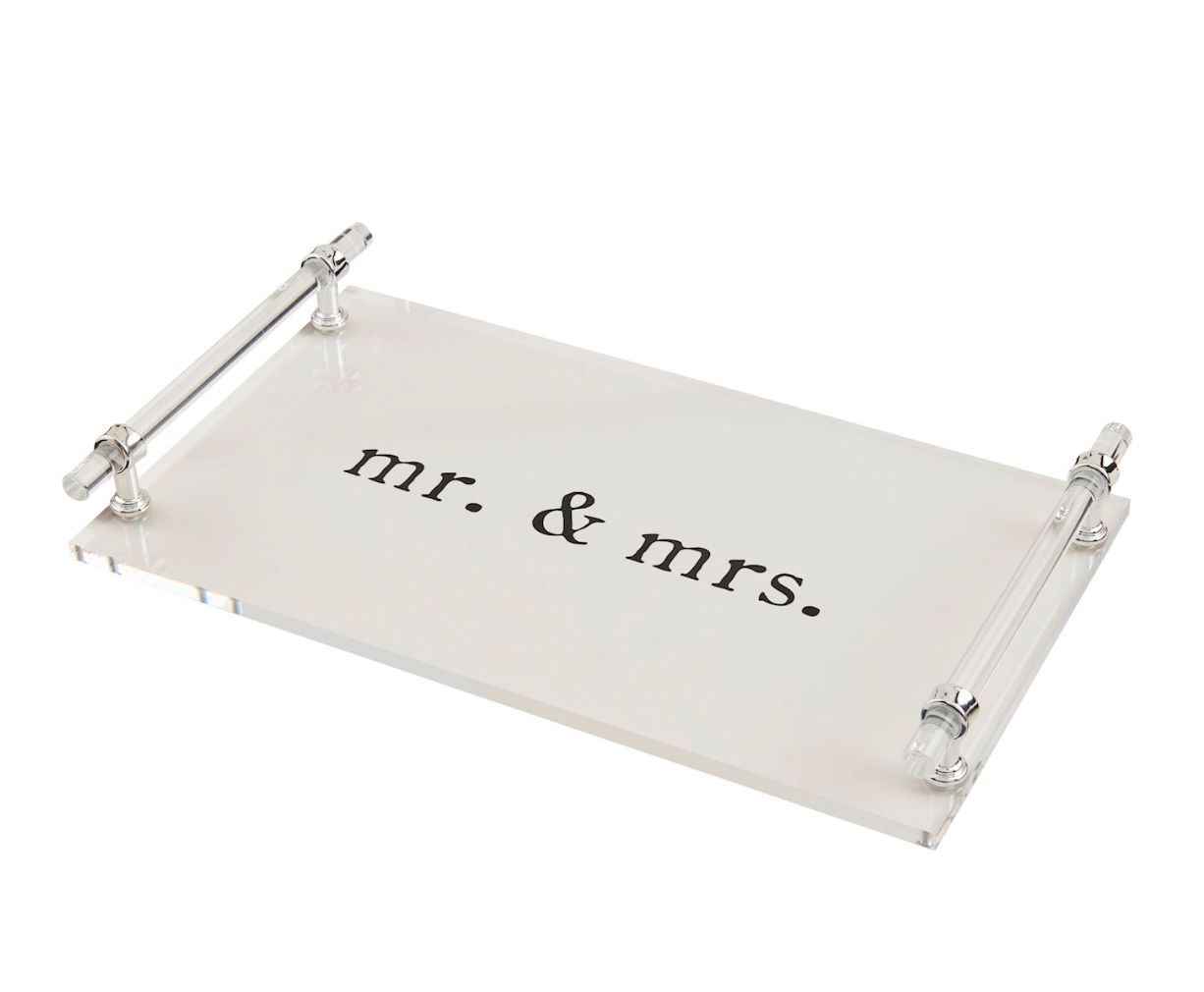 Add a touch of fun to your space with this Mr & Mrs Acrylic Tray! Featuring dimensional side handles, it’s perfect for serving up smiles or organizing your favorite things with a playful twist. Durable and stylish, it’s a charming way to keep life light and lovely.