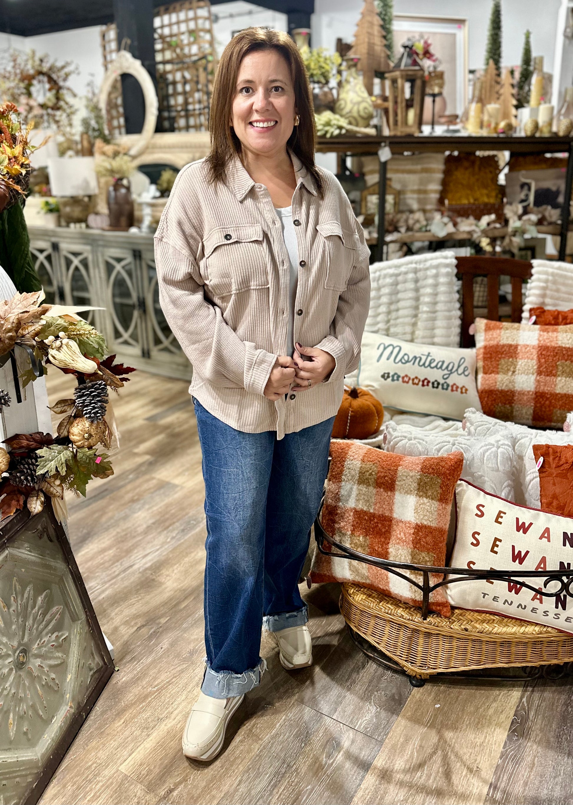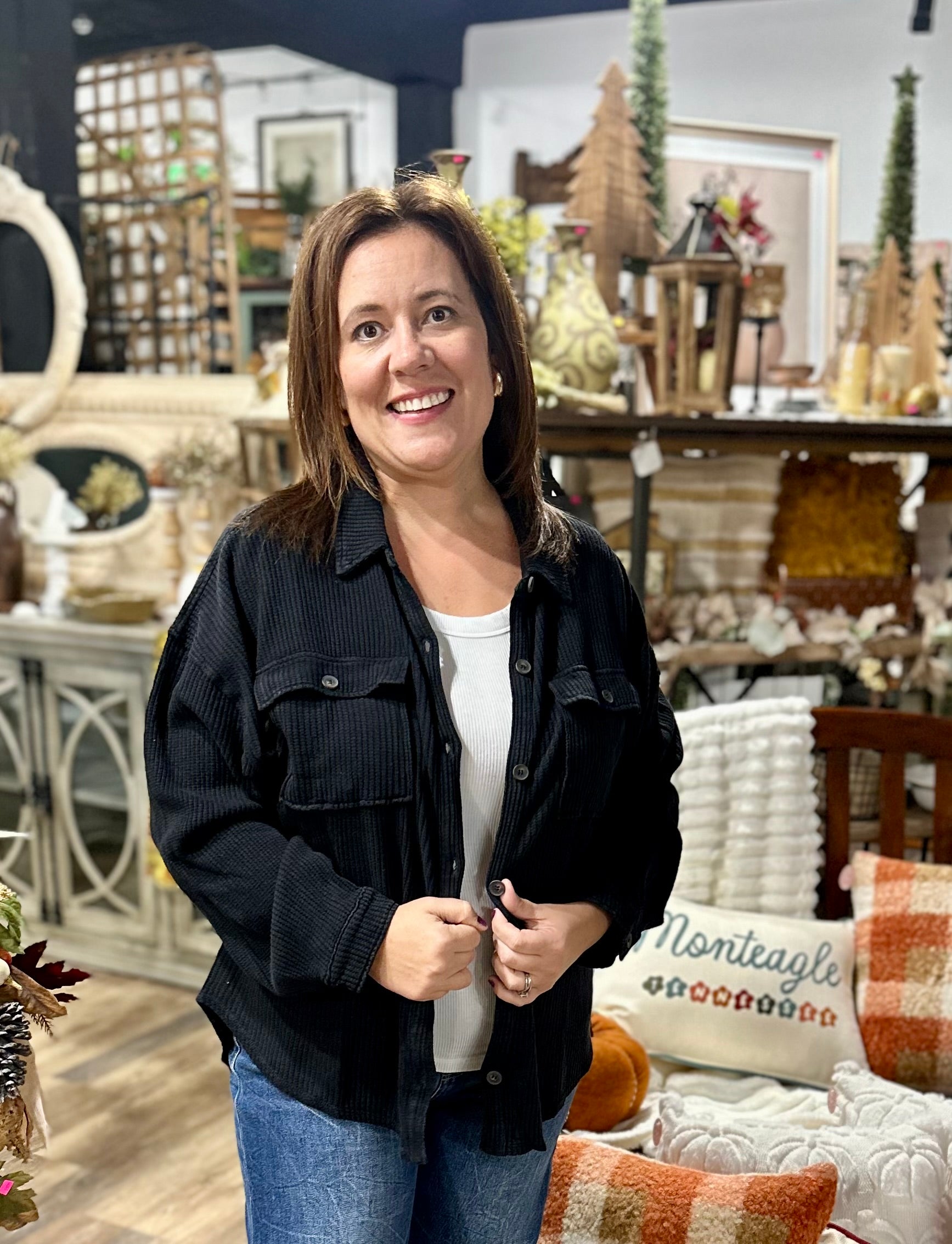 Cozy up in the Oversized Mineral Washed Waffle Button Up Shacket, your new go-to for fall and winter fun. Made from 100% cotton, its soft waffle texture and relaxed fit make it perfect for layering on chilly days. Whether you're lounging at home or adding a festive touch to your everyday look, this long-sleeve shacket brings comfy style and playful spirit all season long.