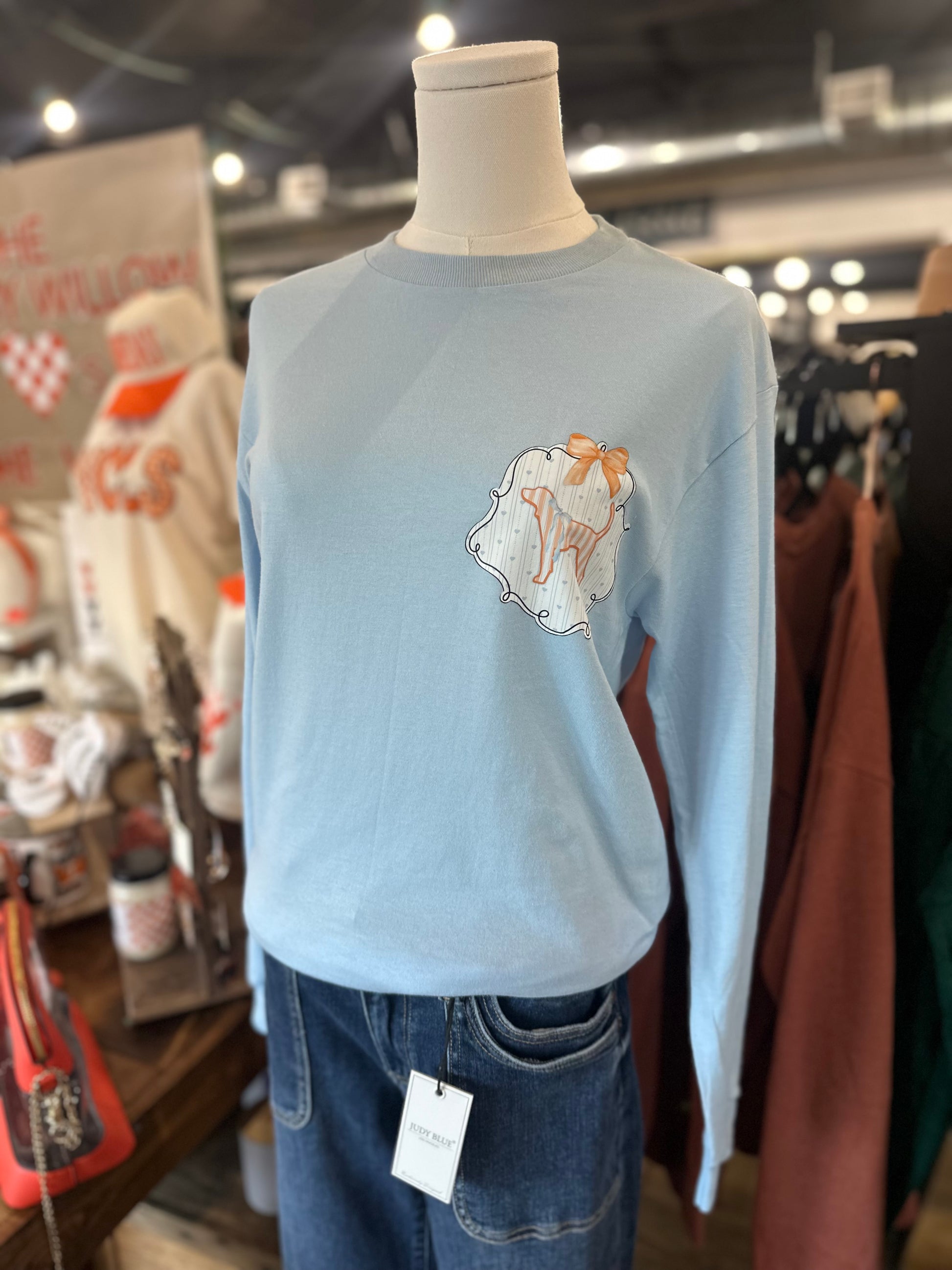 Stay stylish and comfy in the Preppy TN Long Sleeve Shirt, featuring Gildan's trusted Heavy Cotton™ fabric for durability and softness. This unique design adds playful charm with a bow detail and vibrant orange and blue hues. Practical side pockets offer a handy spot for essentials, while the classic unisex fit keeps it easygoing for anyone. Perfect for layering or wearing on its own, this shirt brings a fun twist to everyday basics.