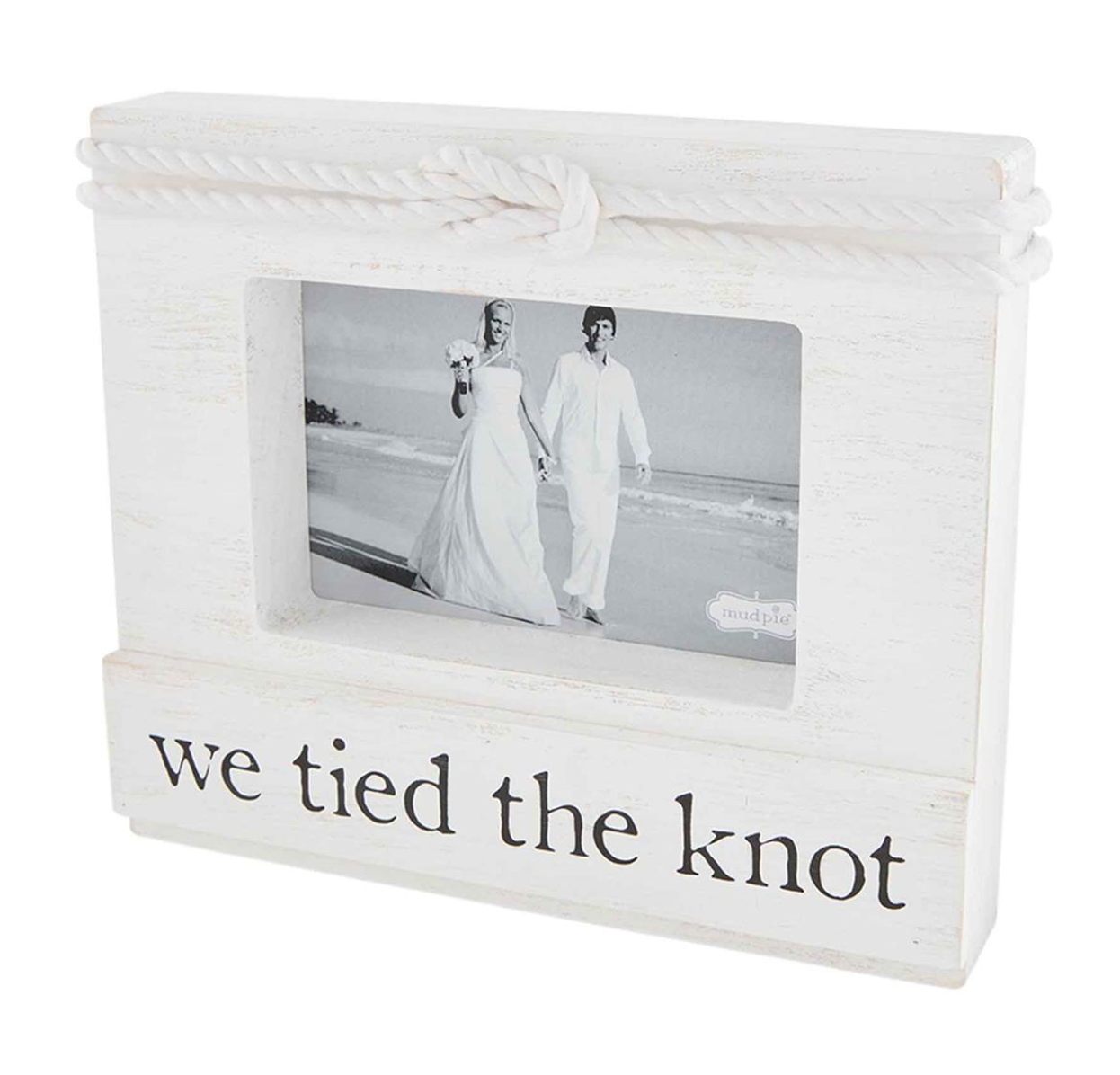 Add a touch of rustic charm with the Tied The Knot Frame. This playful frame features a distressed wooden block design accented by a cotton rope knot, perfectly capturing a cozy, nautical vibe. It’s designed to showcase your favorite 4" x 6" photo, making it a delightful way to display memories with a fun twist.
