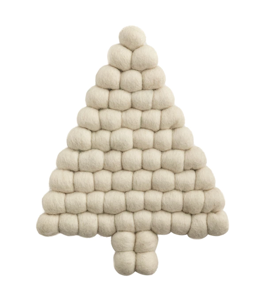 Add a splash of whimsy to your kitchen with this felted pom tree-shaped trivet! Soft yet sturdy, it keeps your hot pots and pans safe from your surfaces while bringing a playful, nature-inspired touch to your dining table. Perfect for cozy meals or festive gatherings, this charming trivet blends function with fun effortlessly.